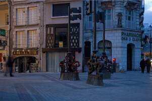 В Блуа современные здания примыкают к среденвековым, а памятники старины соседствуют с современными скульптурными композициями. Я не знаю, смеяться, удивляться или умиляться, когда на средневековом (или выделанном под старину) бревне изображена вывеска магазина, в витрине которого манекен в купальном костюме. Может быть, это должно привлекать туристов, но, возможно, так реализуется гордость древней историей своего города. Вполне качественная патриотическая идея.
